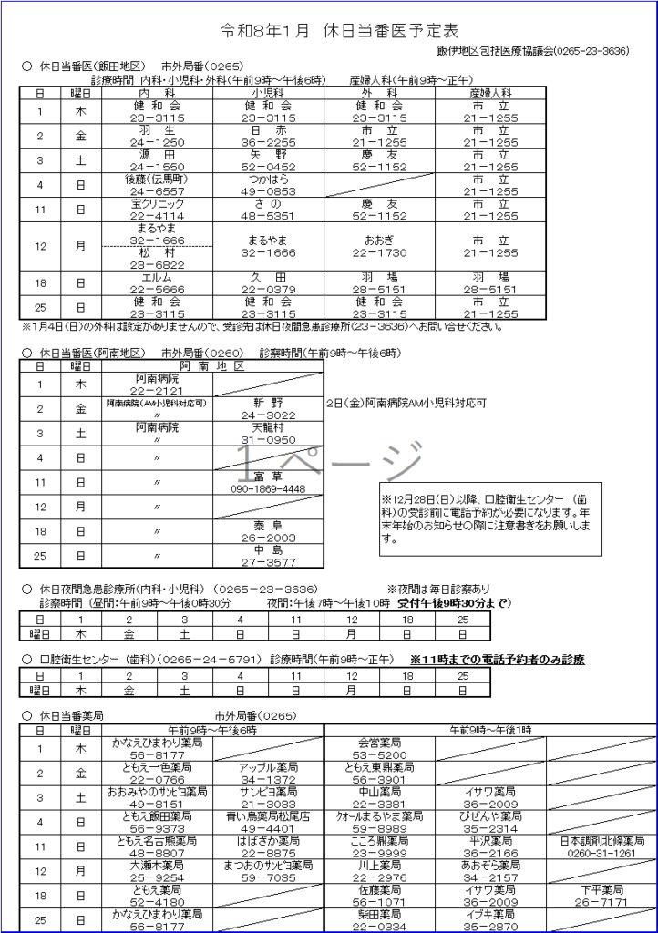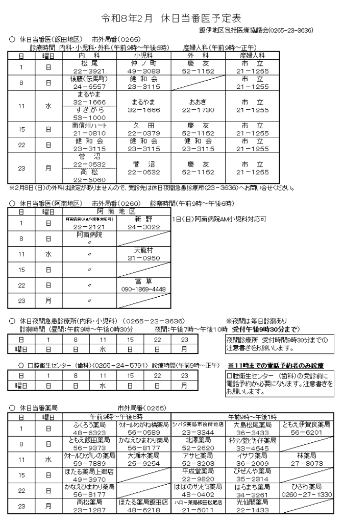 受診の際には、事前に電話でご確認ください。
