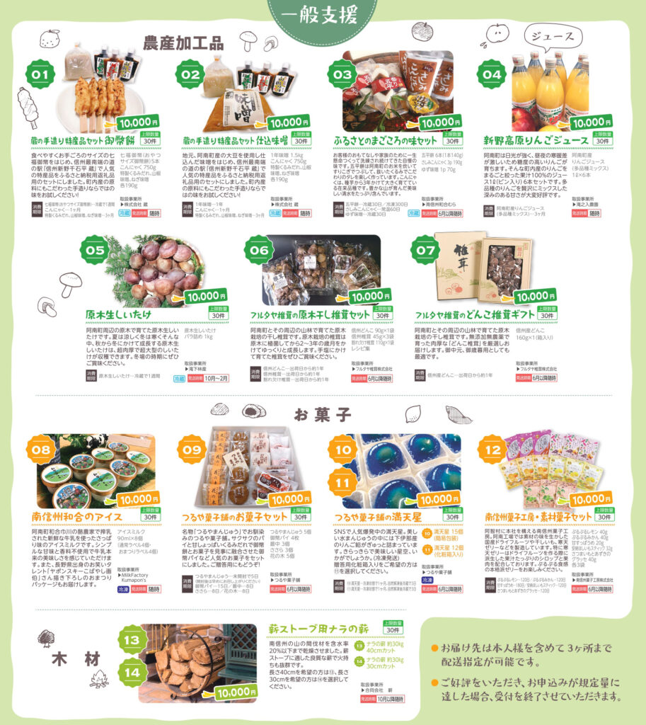- 12,000円の寄付=次の返礼品のいずれかをお申し込みいただけます。