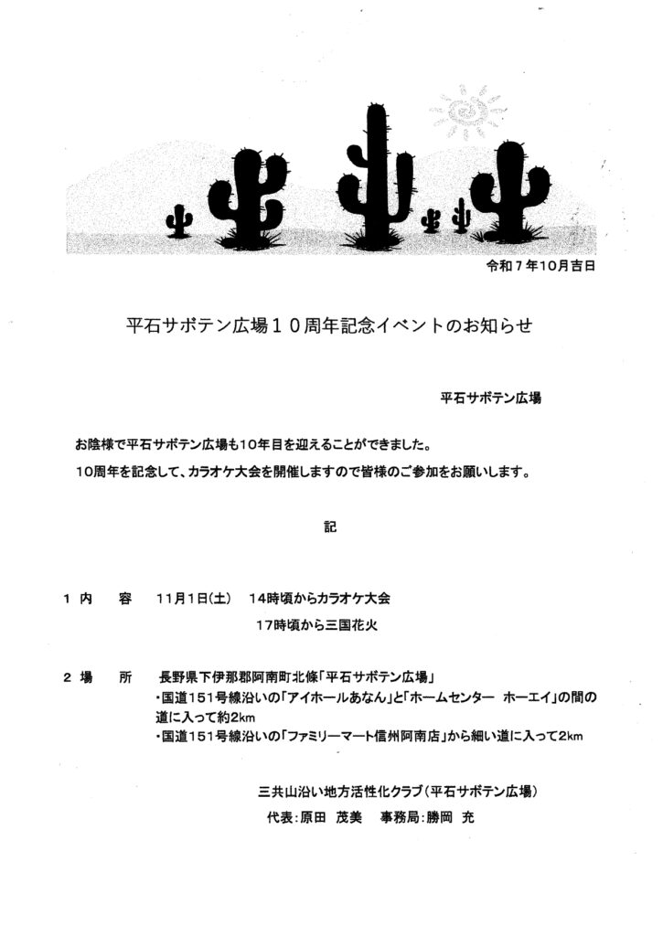平石サボテン広場は、平成28年度から地元の有志の皆さんにより運営されています。